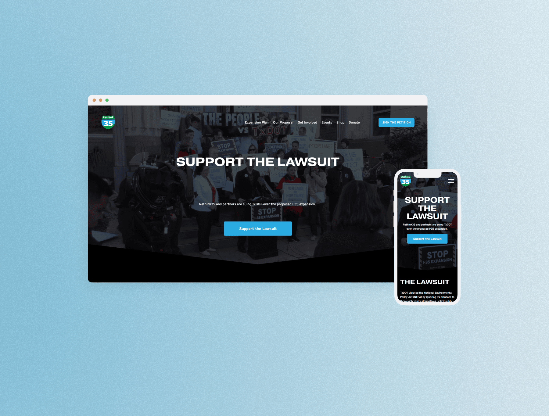 Meah helped design the lawsuit webpage for Rethink35. She worked with a small team, asked insightful questions on how the webpage would be used, who the target audience is, how to best convey information. She then worked closely with a web developer to implement the webpage and updated it iteratively with feedback received from leaders at Rethink35.